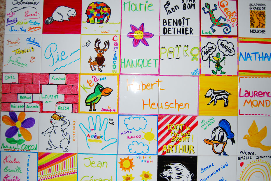 D'où que vous nous lisiez, marquez à vie votre participation à ce grand projet ! Nous souhaitions vous associer à cette œuvre de construction et d'embellissement des locaux en vous y accordant une place particulière. L'idée a germé de garnir un mur principal de 24 m², bien en vue dans la grande salle, de céramiques que vous pourrez habiller suivant votre inspiration.